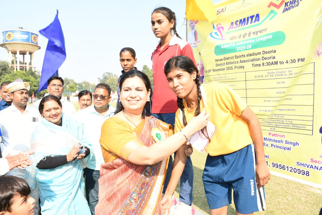 Deoria News:रविन्द्र किशोर शाही स्पोर्ट्स स्टेडियम में खेलो इंडिया अस्मिता एथलेटिक्स बालिका लीग सम्पन्न
