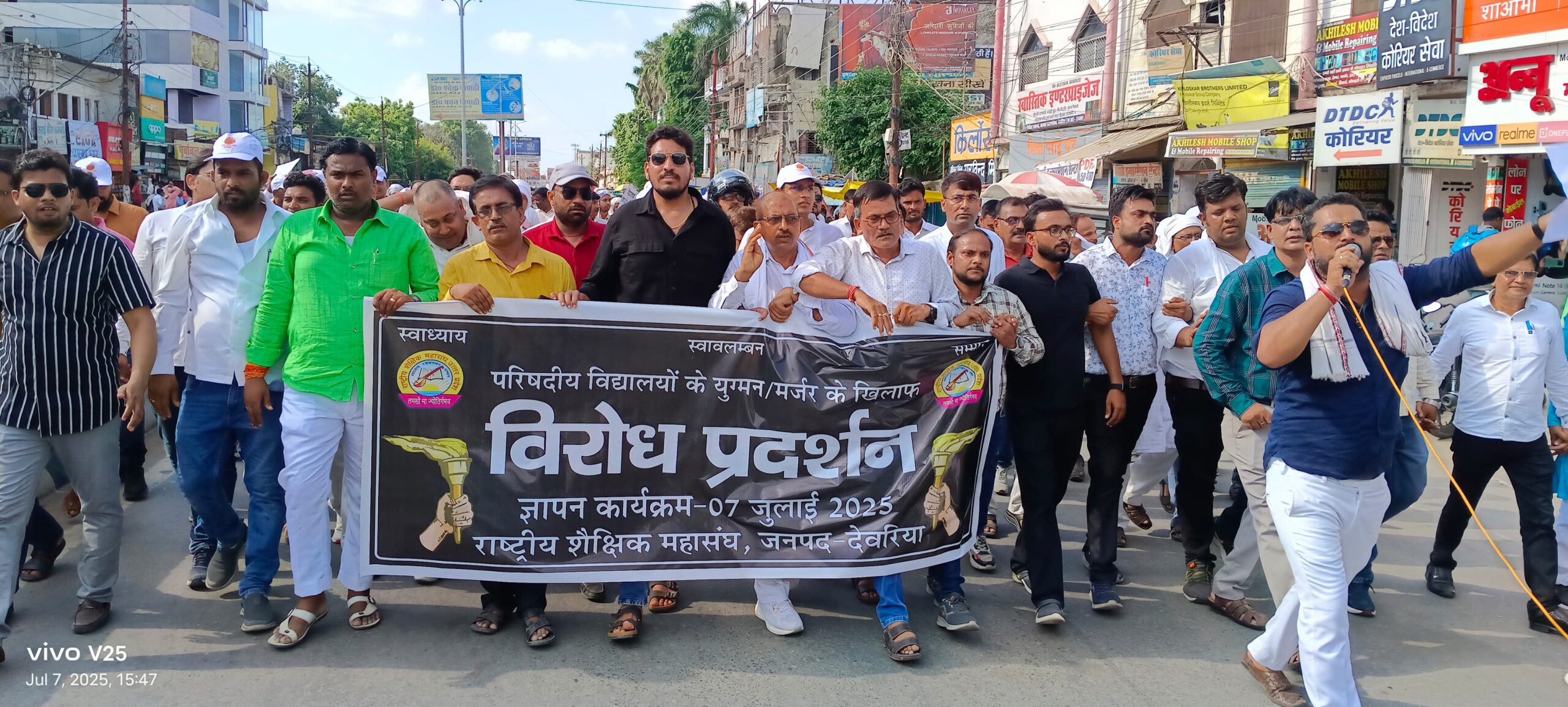 Deoria News: विद्यालय युग्मन के विरोध में गरजा शिक्षक समाज | राष्ट्रीय शैक्षिक महासंघ ने किया ऐतिहासिक प्रदर्शन