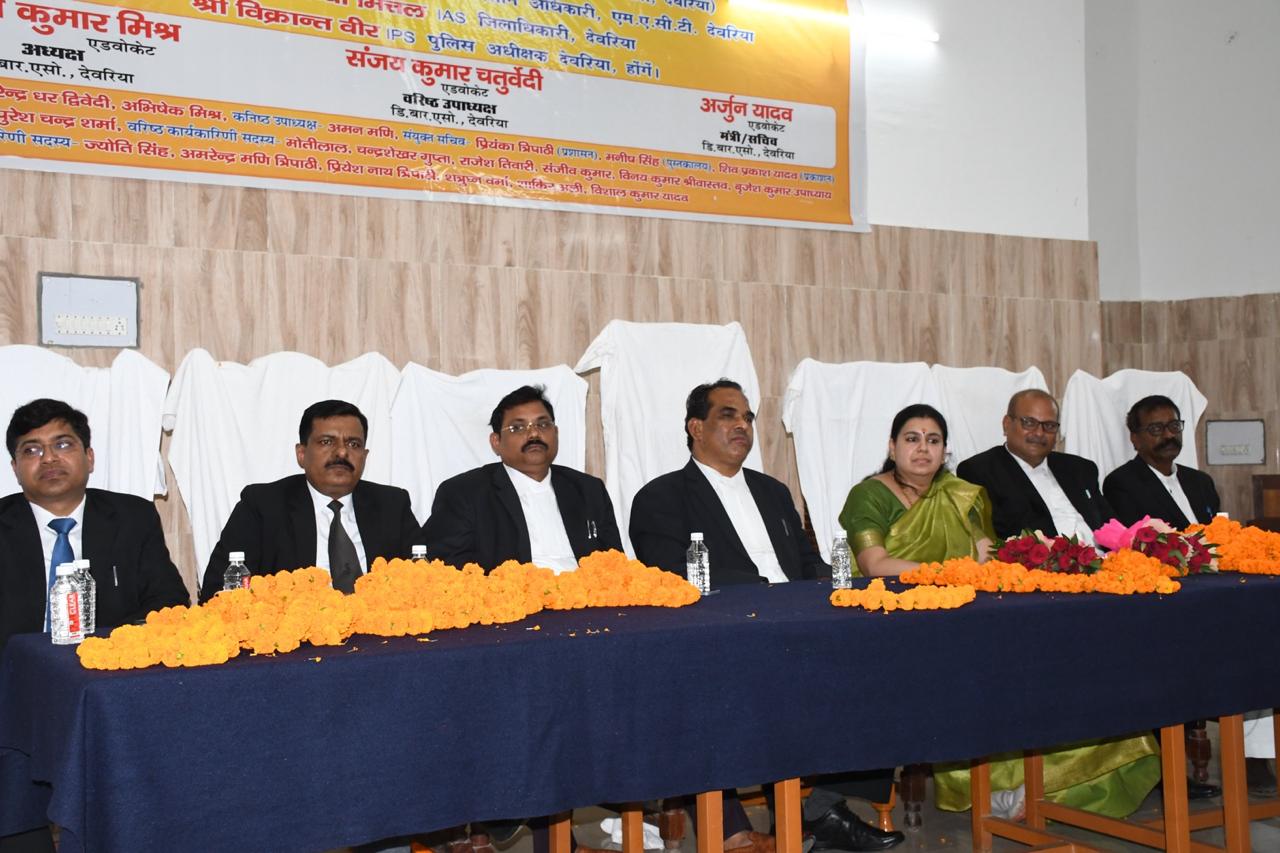 समारोह में पुलिस अधीक्षक विक्रांत वीर, अपर जिला जज सुभाष चंद्र मौर्य, न्यायिक अधिकारी मनोज कुमार तिवारी, शिखा रानी जयसवाल समेत अनेक गणमान्य लोग उपस्थित रहे। कार्यक्रम के दौरान सभी अधिवक्ताओं ने न्यायिक गरिमा, वकालत पेशे की मर्यादा और संविधान में निहित मूल्यों की रक्षा करने का संकल्प लिया।