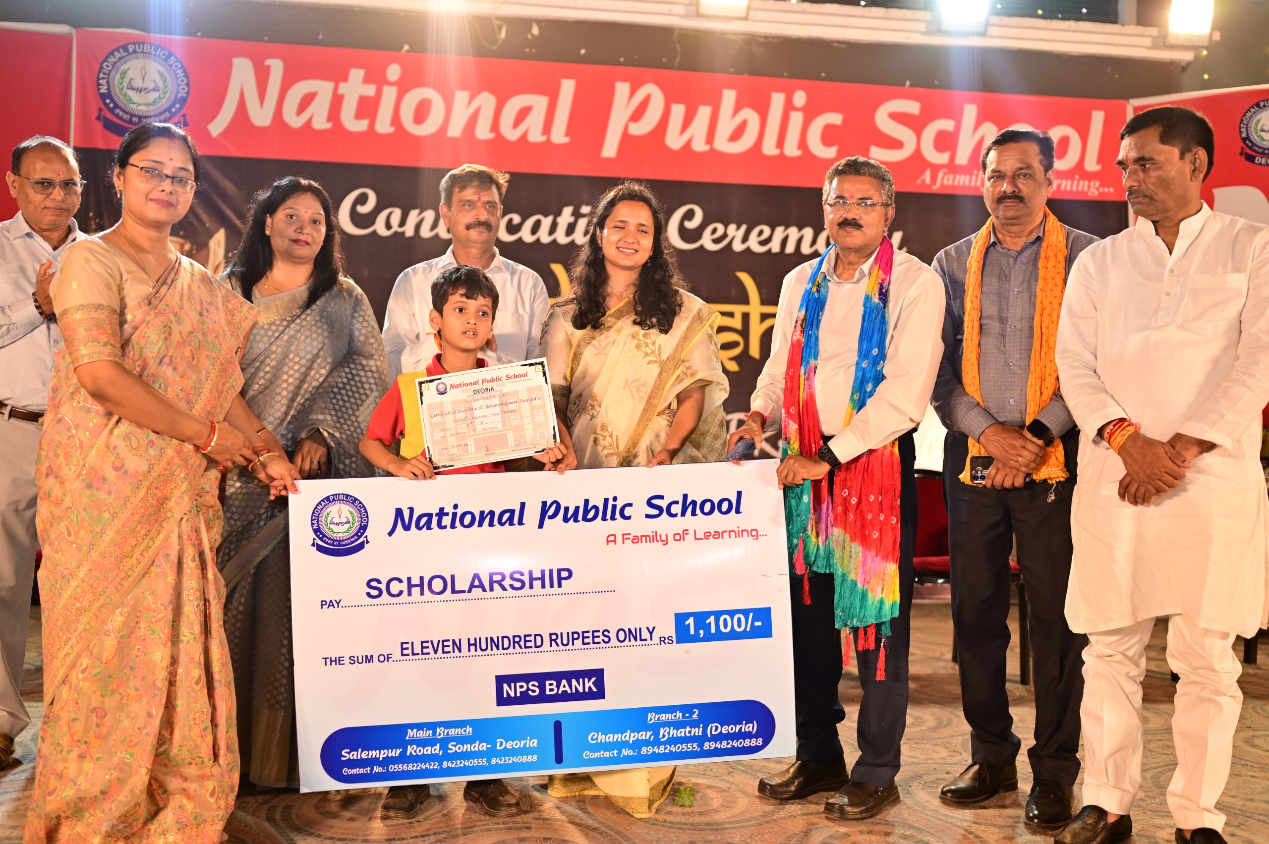 देवरिया। शहर के नेशनल पब्लिक स्कूल, सोदा के प्रांगण में पुरस्कार वितरण एवं दीक्षांत समारोह का भव्य आयोजन किया गया। कार्यक्रम की मुख्य अतिथि सुश्री श्रुति शर्मा (ज्वाइंट मजिस्ट्रेट) रहीं। विशिष्ट अतिथियों में डॉ. जे.एन. पांडेय (शिशु एवं बाल रोग विशेषज्ञ), दिनेश कुमार त्रिपाठी (अध्यक्ष, उत्तर प्रदेश माध्यमिक शिक्षक संघ), अवनीश यादव (पूर्व अध्यक्ष, छात्र संघ इलाहाबाद विश्वविद्यालय), अशोक मिश्रा (प्रबंधक, संत विनोबा पीजी कॉलेज), अनिल मिश्रा (डायरेक्टर, एनपीएस), रवि प्रकाश मिश्रा, भानु प्रताप सिंह (प्रबंधक, राम मनोहर लोहिया इंटर कॉलेज), सनत कुमार पांडेय, सच्चिदानंद सिंह राणा, अमित तिवारी, गिरिजेश मिश्रा एवं शिवानंद मिश्रा (सभासद) उपस्थित रहे।