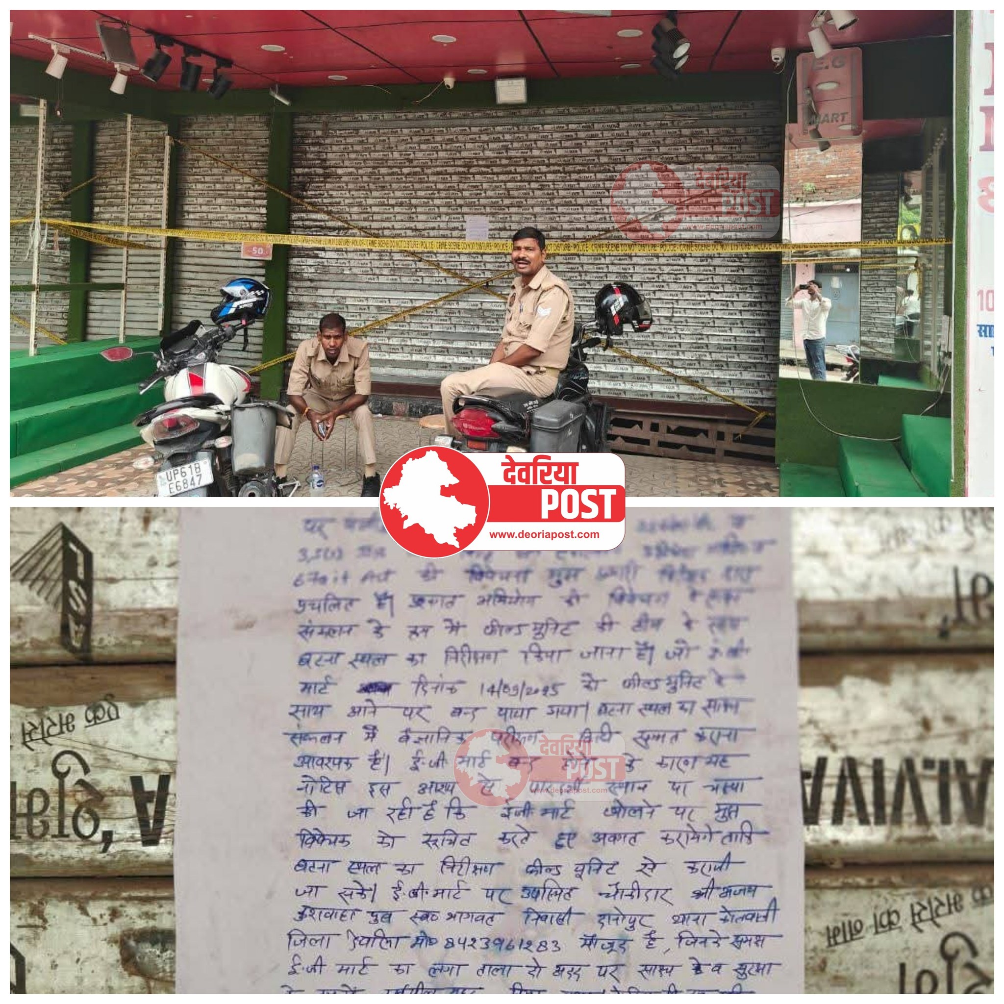देवरिया न्यूज़ अपडेट (UP News): उत्तर प्रदेश के देवरिया जिले से धर्मांतरण के बड़े मामले में पुलिस को बड़ी सफलता मिली है। पुलिस ने मुख्य आरोपी और ईजी मार्ट (SS Mall) के संचालक उस्मान गनी को लखनऊ से गिरफ्तार कर लिया है। वहीं, रविवार की शाम पुलिस ने रामलीला मैदान रोड स्थित ईजी मार्ट (SS Mall) को सील कर नोटिस चस्पा कर दिया।