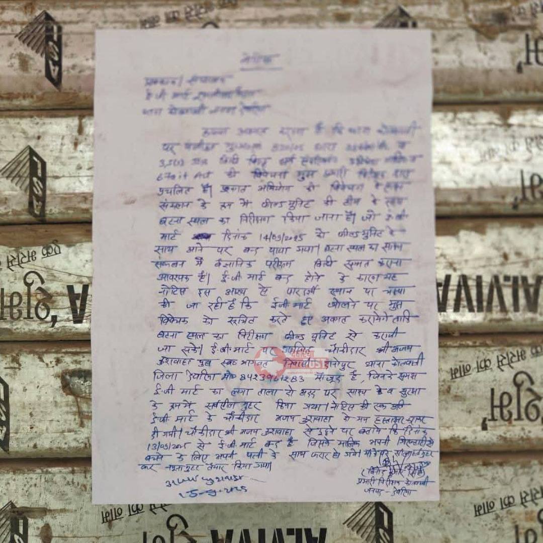 मॉल सीलिंग: कोतवाल विनोद कुमार सिंह और फील्ड यूनिट की टीम जब रविवार शाम ईजी मार्ट पहुंची तो वह बंद मिला। इसके बाद पुलिस ने मॉल पर नोटिस चस्पा कर उसे सील कर दिया।